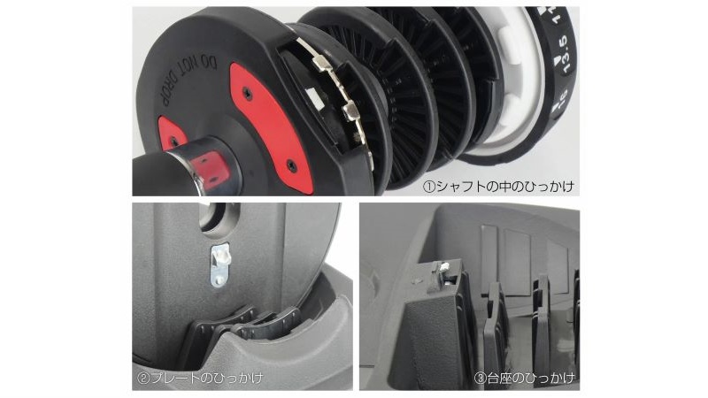 アジャスタブルダンベルの主な特徴は以下の通り。