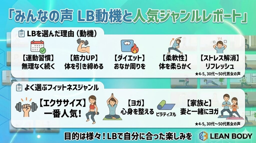 リーンボディでは、自分に合ったレッスンを選び、無理なく続けることが重要なポイントとなります。