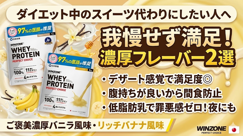 この記事では、ウィンゾーンのプロテイン人気味ランキングを約1,000件のレビューをもとに紹介しました。